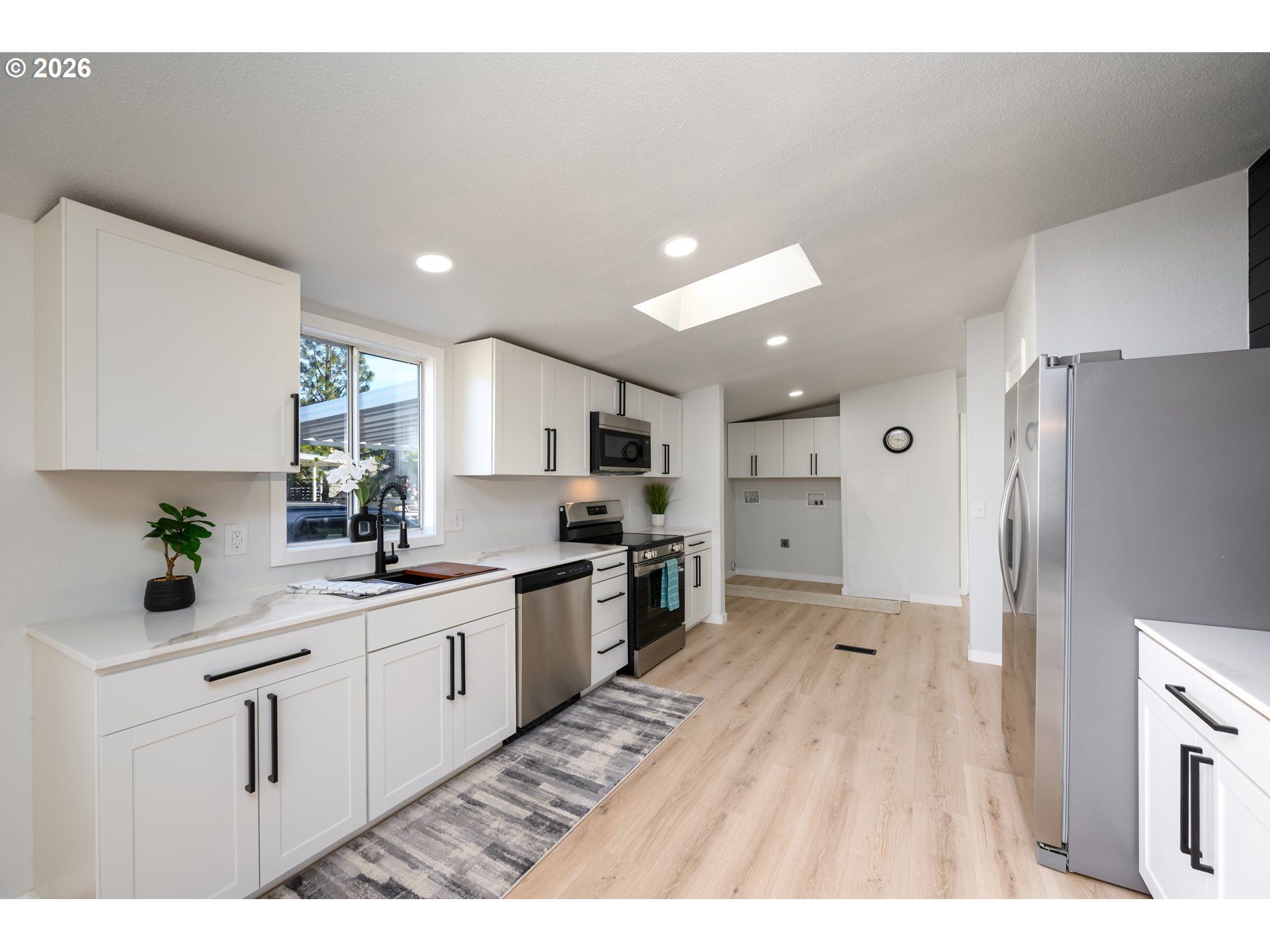 Welcome to 221 River Place, a fully updated 3 bedroom, 2 bathroom home offering approximately 1,500 square feet in a quiet, sought after manufactured home park. This move in ready home has been thoughtfully renovated from top to bottom with modern finishes and quality upgrades throughout. All improvements were completed in 2025 to 2026, reflecting extensive recent updates across the home. The open concept living space features a custom TV wall with a built in 60 inch fireplace and 72 inch mantle, creating a functional and stylish gathering area. The kitchen has been completely remodeled with new cabinets, countertops, and stainless steel appliances including a full size refrigerator. Both bathrooms have been updated with new vanities, fixtures, a 60 inch walk in shower, and a separate bathtub. Additional improvements include new exterior paint and skirting, new interior paint, drywall, and texture, all new doors, trim, and hardware, one vinyl window in the bathroom, waterproof laminate flooring, and new carpet in the bedrooms. System updates include PEX plumbing upgrades where needed, a fully cleaned and serviced heating system, and a new digital thermostat. The home also features all new recessed LED lighting, along with updated plugs and switches throughout. Outside, the partially fenced backyard provides space for outdoor enjoyment with low maintenance appeal. Residents also enjoy access to community amenities including a playground, walking trails, and a dog park. This home offers a blend of modern updates, functional design, and comfortable living. This is a must see!